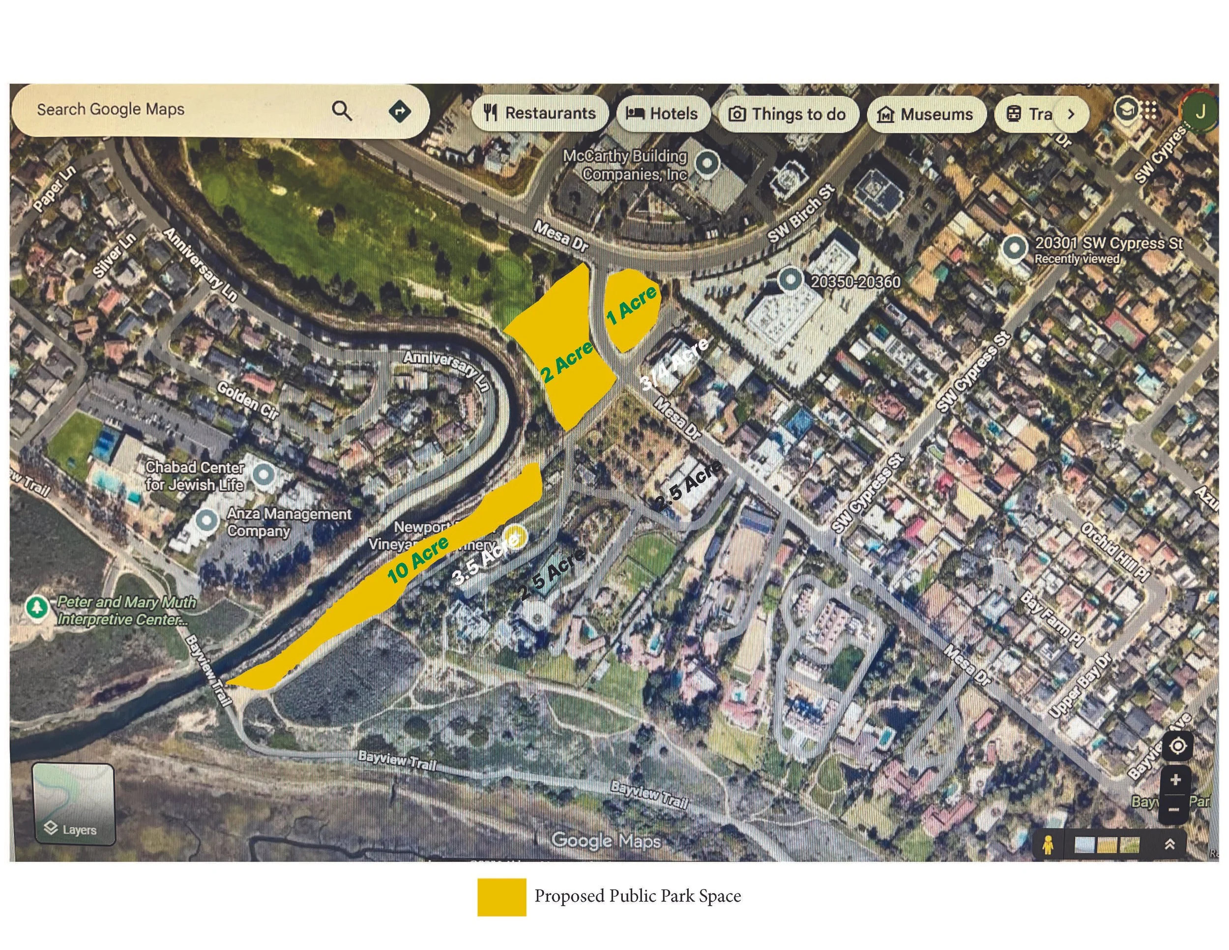 Together, the proposed surf park and additional workforce housing in Santa Ana Heights could eliminate more than 30 acres of mature trees and bird habitat that will not be replaced with the Coastal Commission mandate of sage, scrub bushes and tumbleweeds.